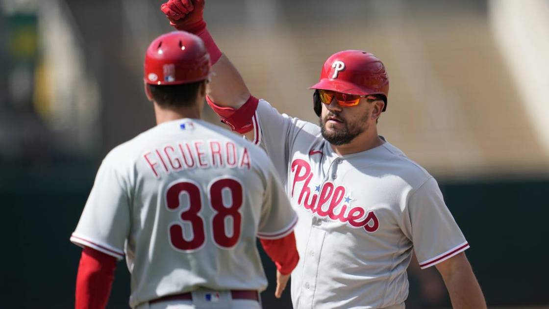 OAKLAND._ Kyle Schwarber conectó el sencillo que trajo la carrera decisiva en el 12do inning y los Filis de Filadelfia vencieron el sábado 3-2 a los Atléticos de Oakland para su quinta victoria al hilo.