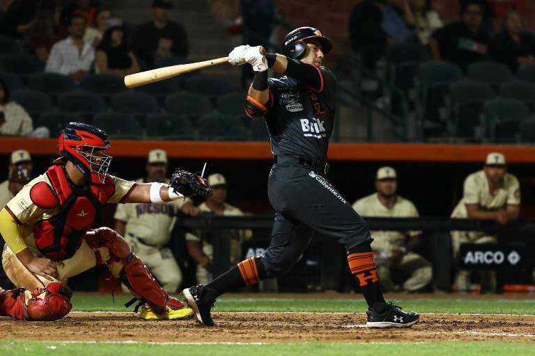 HERMOSILLO._ Con una poderosa ofensiva los Naranjeros de Hermosillo se impusieron este jueves como visitantes nueve carreras a cuatro al Tucson Baseball Team para llevarse el segundo duelo inaugural de la temporada 2025-2026 de la Liga Mexicana del Pacífico.