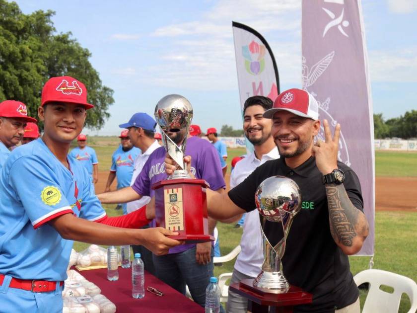 EL POTRERO, Navolato._ El director general del Instituto Sinaloense de Cultura Física y el Deporte (Isde), Julio César Cascajares Ramírez, premió la temporada anterior y bateó la primera bola en la inauguración de la Liga Municipal de Beisbol de Navolato Cosme Retamoza García, de Segunda Fuerza, edición Margoth Urrea Pérez.