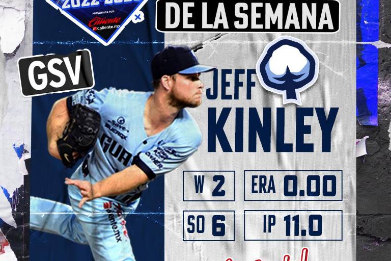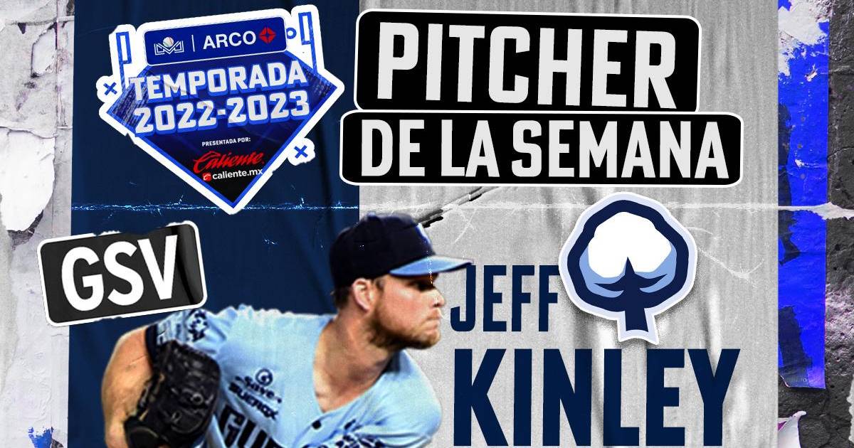 GUADALAJARA._ Viviendo su segundo invierno de experiencia en la Liga Mexicana del Pacífico, el lanzador zurdo de los Algodoneros de Guasave, Jeff Kinley, se ganó el reconocimiento como Pítcher de la Semana, en los primeros días de acción de la Temporada 2022-2023.
