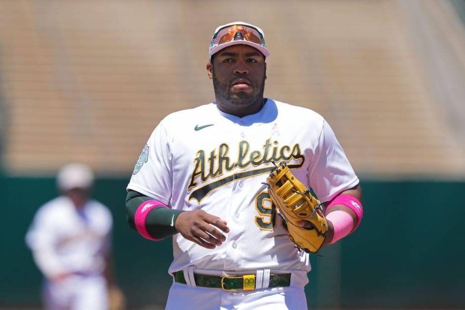 Firmado por un año en enero, Aguilar bateó .221 con cinco jonrones y nueve impulsadas en 36 juegos con Oakland. Tiene 114 bambinazos en sus 10 años de carrera.
