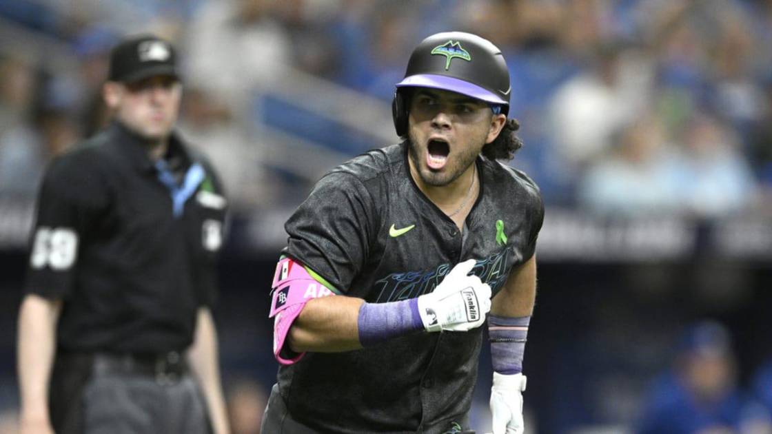 El mexicano Jonathan Aranda conectó un jonrón solitario, su primero de la campaña, en la cuarta entrada ante el abridor de los Reales, Brady Singer.