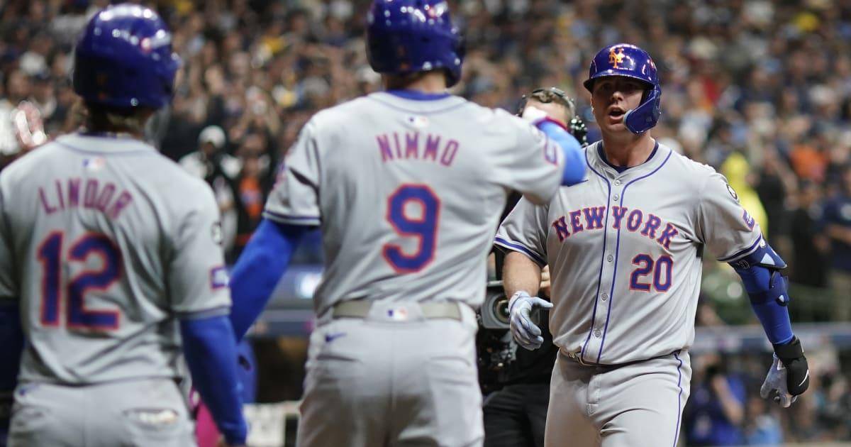 Después de ir perdiendo gracias a dos jonrones consecutivos de Jake Bauers y Sal Frelick en la séptima entrada, los Mets se recuperaron con una base por bolas para abrir la entrada y un hit con un out de Brandon Nimmo en la novena. Enfrentándose al cerrador de Milwaukee, Devin Williams, Alonso siguió con un jonrón de tres carreras hacia el campo opuesto, mientras los Mets salían en tropel de su dugout para celebrar. Por un momento, la multitud que colmaba el American Family Field se quedó en silencio.
