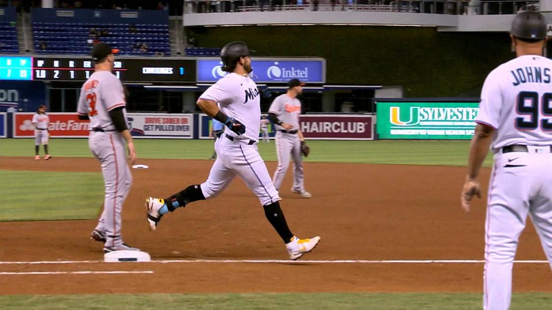 Alfaro abandonó el partido entre los Marlins y los Orioles de Baltimore al quejarse de dolores en la corva izquierda