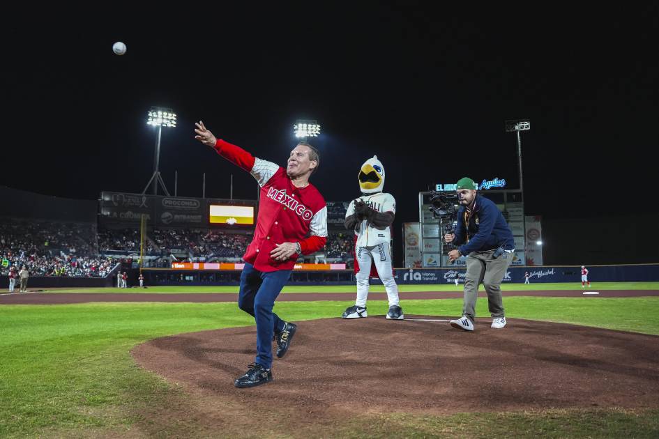 En un emotivo evento, "El gran campeón mexicano" tuvo el honor de lanzar la primera bola en el estadio de los Caballeros Águilas, donde se enfrentan México y República Dominicana.