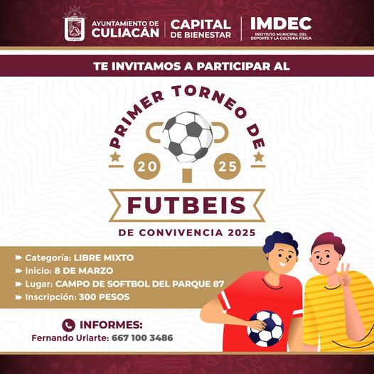 CULIACÁN._ Con el objetivo de fomentar la convivencia familiar y el deporte, el Instituto Municipal del Deporte y Cultura Física de Culiacán ha anunciado la realización del Primer Torneo de Futbeis de Convivencia 2025, un evento que busca reunir a jugadores de todas las edades en una competencia sana y recreativa.