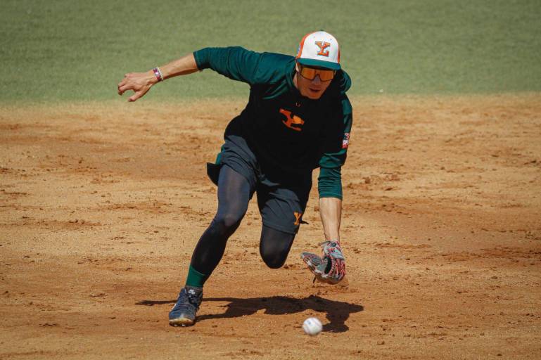 Seguidamente, todos los lanzadores en dos grupos practicaron el tiro hacia la primera base con rolas hacia la loma para de ahí continuar con las sesiones extra de bateo.