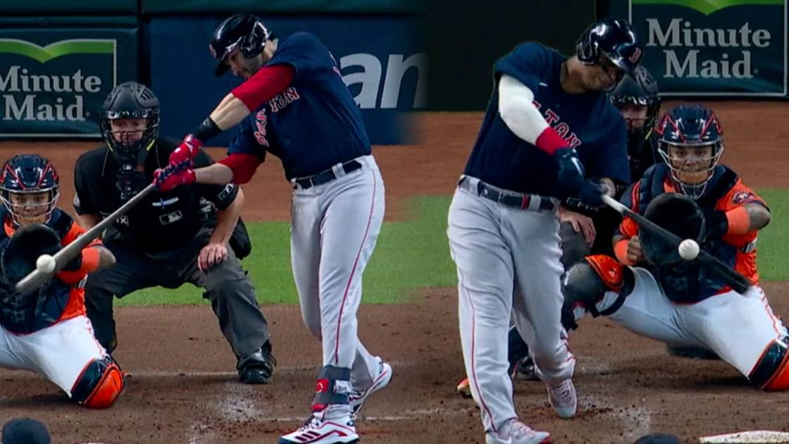 Boston se convirtió en el primer equipo en conectar dos grand slams en un juego de postemporada, por cortesía de Martínez y del dominicano Devers en los primeros dos innings. Los Medias Rojas doblegaron el sábado 9-5 a los Astros para igualar a un triunfo por bando la Serie de Campeonato de la Liga Americana.