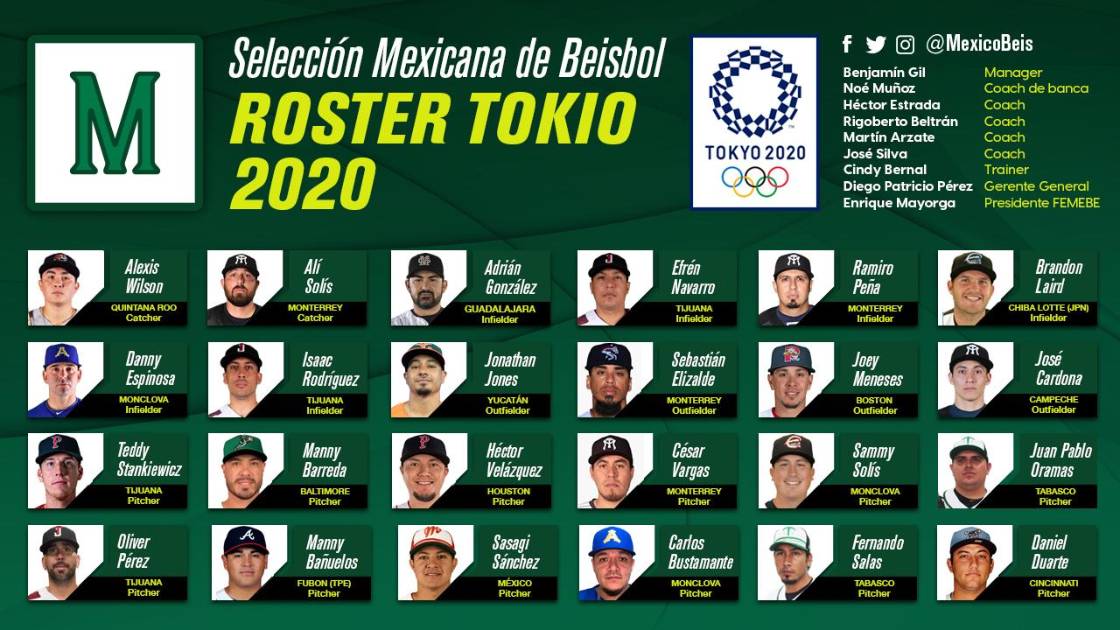 El equipo dirigido por el mánager Benjamín Gil consta de 12 lanzadores y 12 jugadores de posición, quienes se concentrarán desde el 17 de julio en la Ciudad de México para cumplir con el protocolo sanitario del Comité Olímpico Internacional.