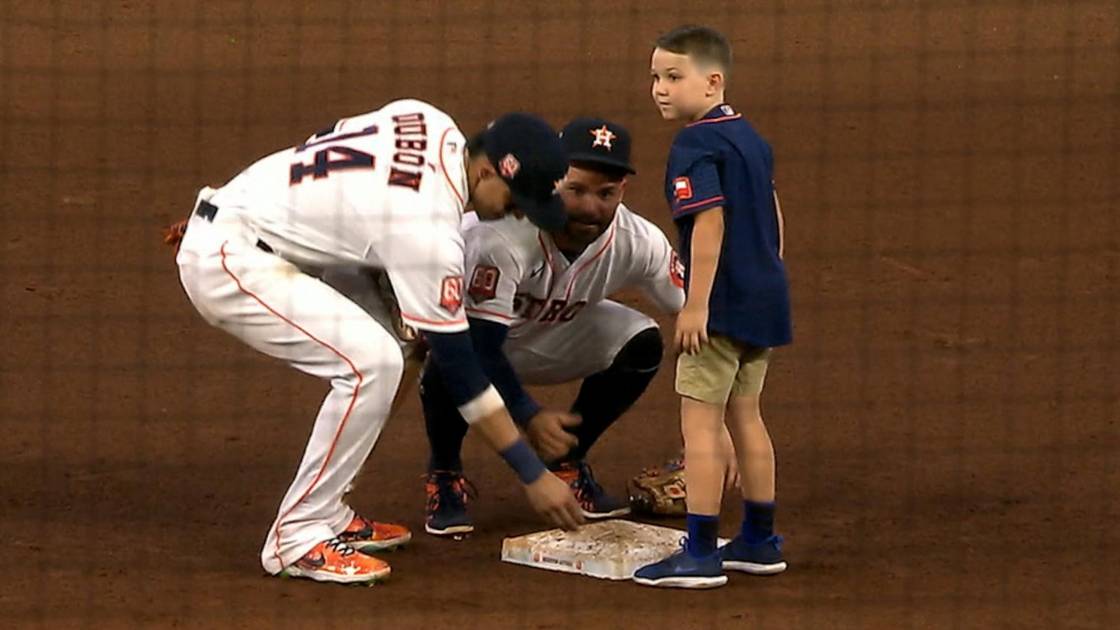 En Houston, los niños participantes suelen comenzar el juego en el territorio de foul del jardín derecho. Pero el martes por la noche en el Minute Maid Park, un aficionado de 6 años, llamado Oliver, corrió hacia la intermedia en vez de continuar por territorio de foul.
