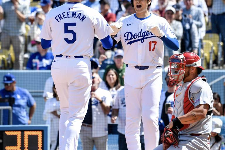 LOS ÁNGELES._ Shohei Ohtani se embasó tres veces en su debut con los Dodgers de Los Ángeles, que doblegaron el jueves 7-1 a los Cardenales de San Luis, al disputar su primer juego como locales en una campaña de enormes expectativas.