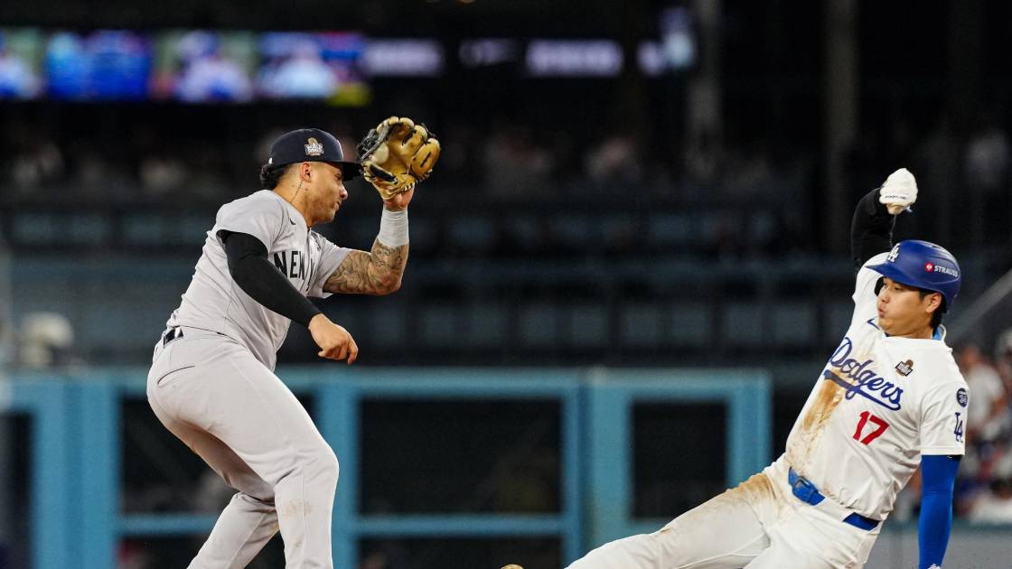 Ohtani, como de costumbre, se deslizó de pie. El disparo del receptor de los Yanquis, Austin Wells, llegó a tiempo para que el torpedero Anthony Volpe lo tocara para el out. La superestrella japonesa de los Dodgers pareció ponerle mucho peso al hombro cuando colocó la mano izquierda en el suelo durante la jugada, y después se le vio claramente adolorido.