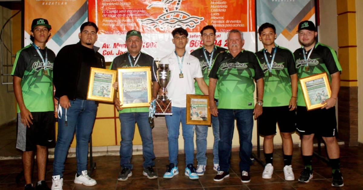 “Reciban un cordial saludo de nuestra directora, Fabiola Judith Verde Rosas, les agradecemos la disciplina y el talento mostrado a lo largo de la liga y los felicitamos por este logro que obtuvieron, deseando que siga creciendo el beisbol juvenil aquí en Mazatlán y surgiendo nuevos valores”, dijo José Ángel Vega Salcido, coordinador de Deporte Federado del Instituto Municipal del Deporte, quien acudió a la ceremonia de premiación organizada por José Alonso Casillas Meza y Roberto Guerra Espinoza, promotores de la liga.