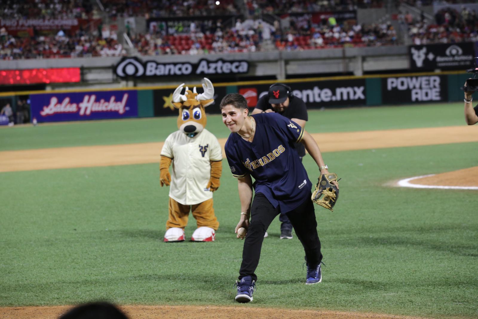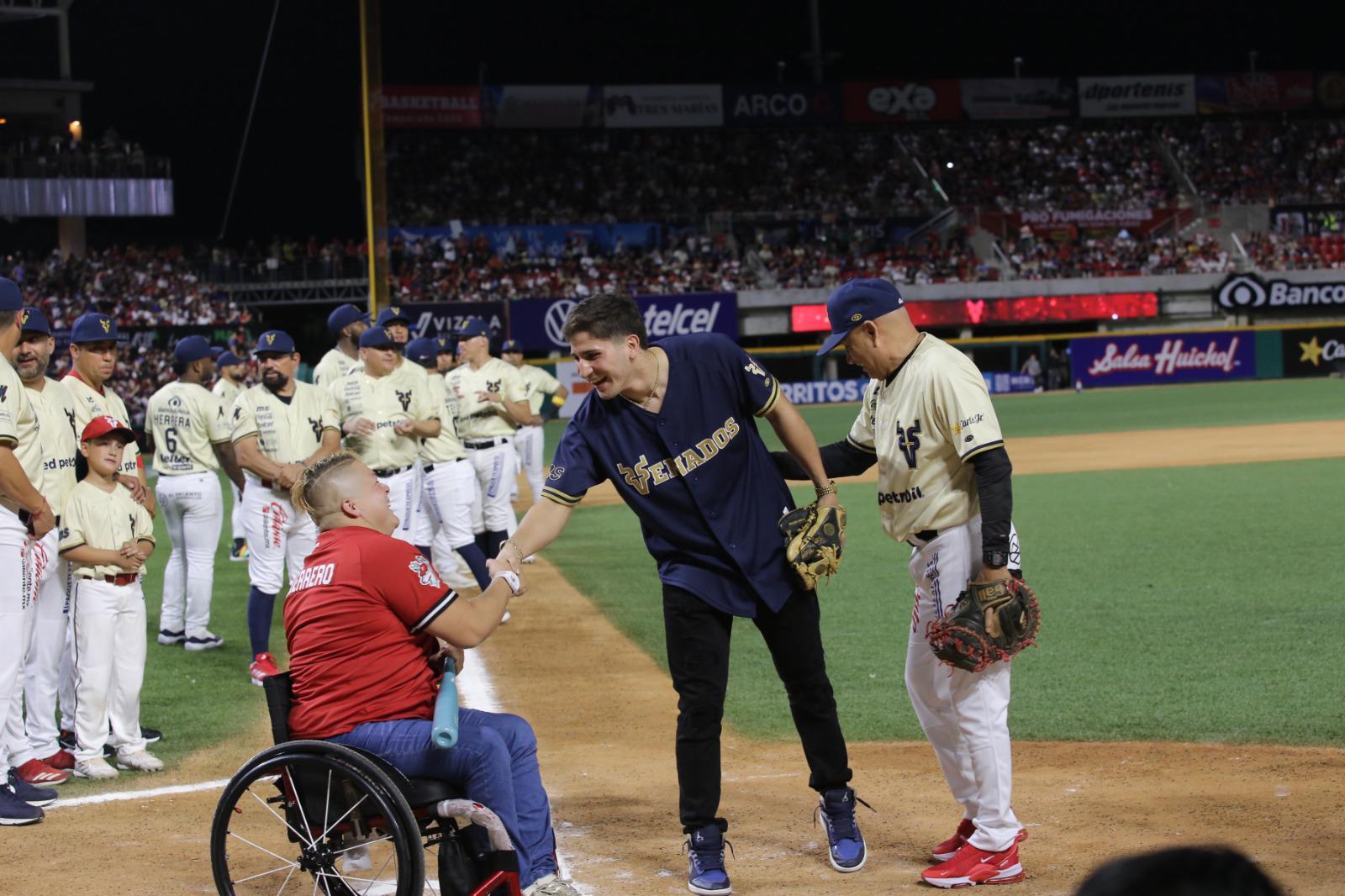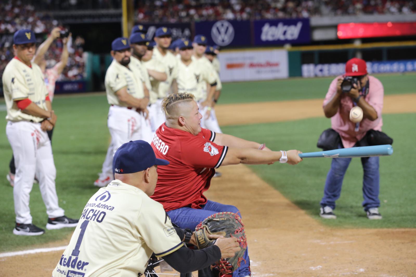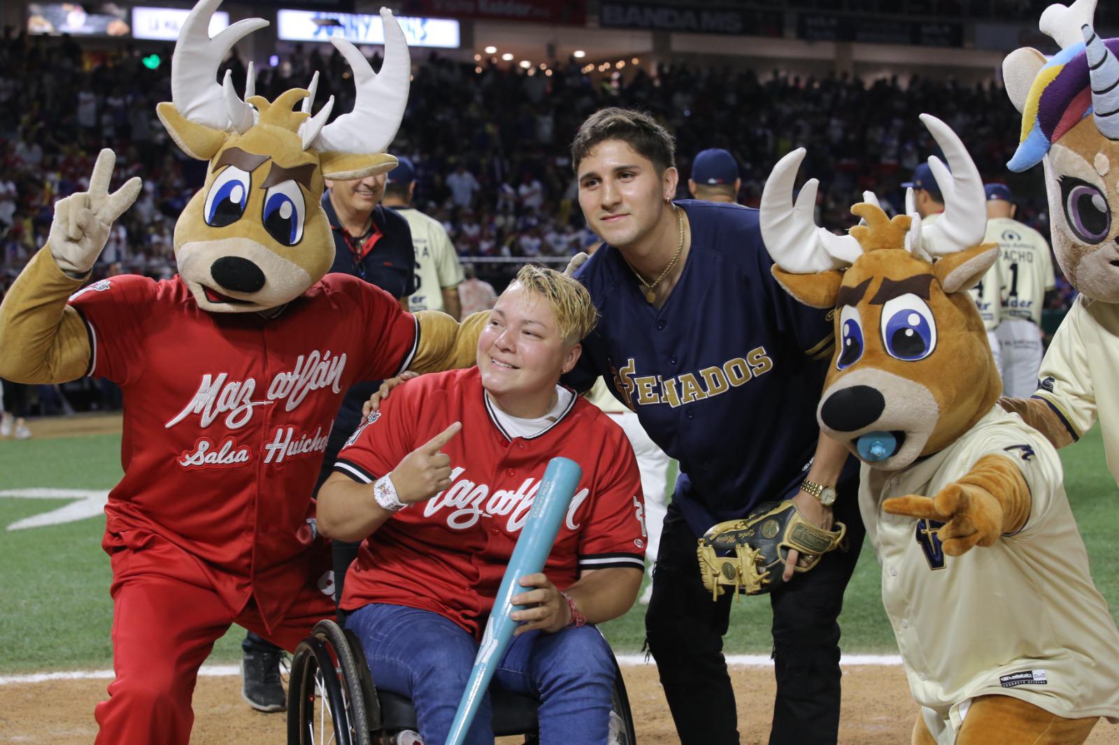 Al medallista de plata en boxeo le tocó el lanzamiento de la primera bola, como bateadora Guerrero Cázarez, medallista de bronce en Paralímpicos en la disciplina de lanzamiento de bala, y de cátcher fungió Pacho Burgos.