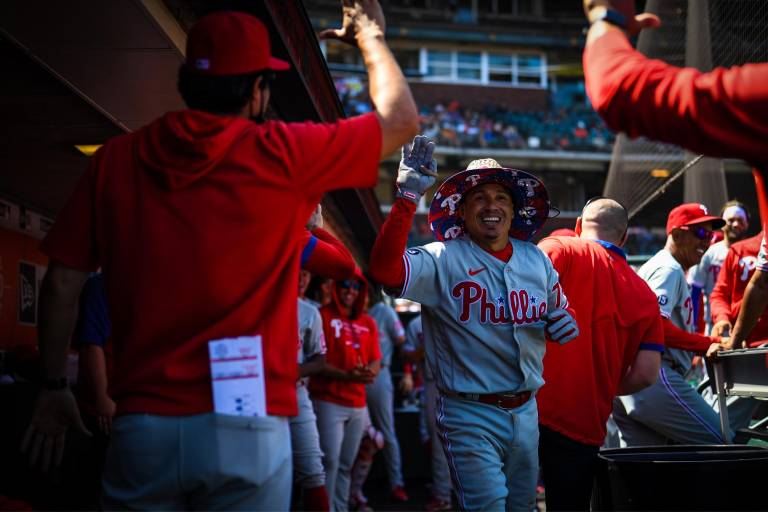 SAN FRANCISCO._ Rhys Hoskins rompió una racha de 40-2 al bate con un par de jonrones y seis carreras impulsadas, el mejor registro de su carrera, para liderar a los Filis de Filadelfia a vencer 13-6 el sábado a los Gigantes de San Francisco.
