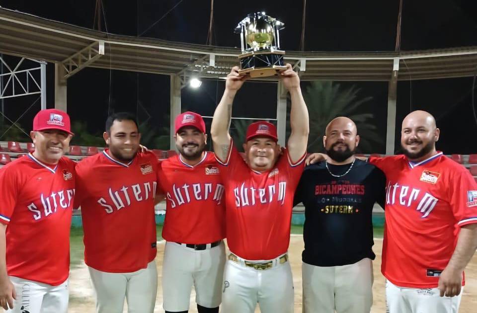 MAZATLÁN._ Suterm-Sección 75 obtuvo el campeonato de la Liga de Beisbol Primera Fuerza Nocturna, al derrotar por score de 11-2 a Panteras Bats, al concluir la temporada 11 en honor de Gustavo Alonso Escobedo Escobar y Paúl Llano Gutiérrez.