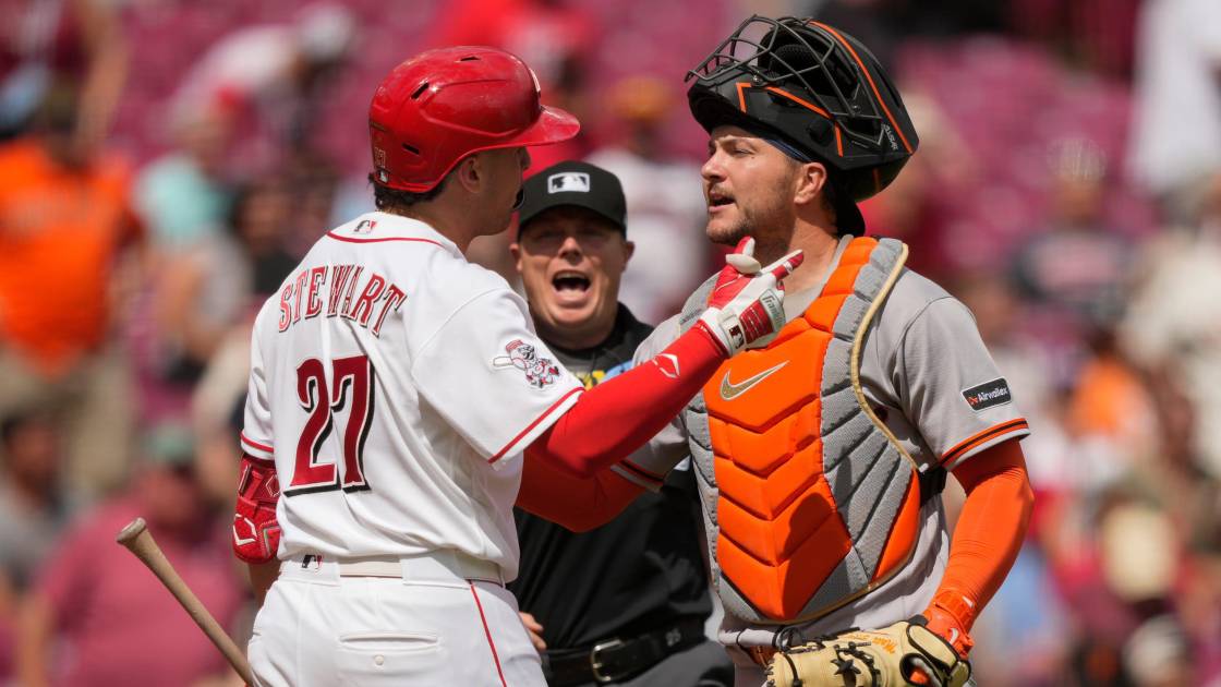 Una noche antes, en la séptima entrada, el relevista de los Gigantes, JT Brubaker, se ofendió cuando Spencer Steer pidió tiempo en el último momento posible mientras el derecho realizaba un pitcheo. Antes de su siguiente lanzamiento, Brubaker dejó que el reloj de pitcheo marcara casi cero e hizo esperar a Steer. Se pudo ver al bateador gritando para que tirara la pelota. Steer conectó una línea de hit hacia el jardín izquierdo.