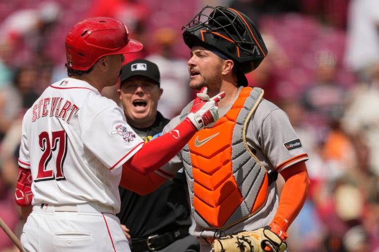 CINCINNATI._ Las cosas se calentaron entre los Rojos y los Gigantes durante el último juego de la serie de tres encuentros el jueves en el Great American Ball Park, lo que resultó en la expulsión del relevista de Cincinnati Connor Phillips en la parte alta del octavo inning y en que ambas bancas se vaciaran tras el último out de la victoria de los Gigantes por 3-0.