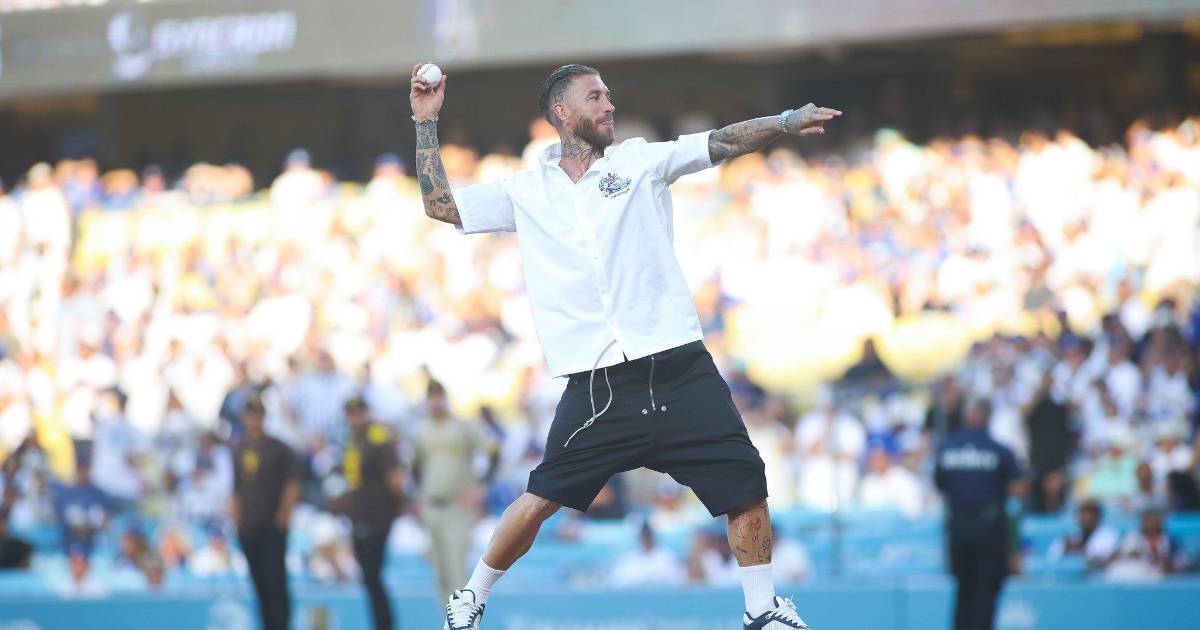 Sergio Ramos lanza la primera bola en juego de Dodgers