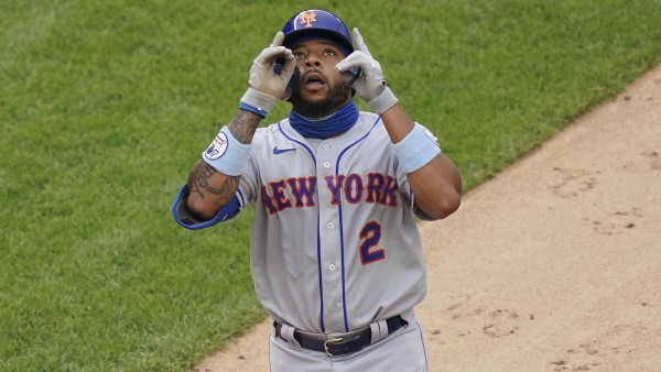 Nimmo pegó tres hits en su primer partido después de dos meses de ausencia por una lesión en los ligamentos de la mano. Mejoró su promedio de bateo a .333 y su porcentaje de embasado a .435.