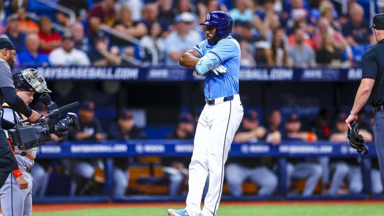 Con un toque del dominicano Wenceel Pérez, Ryan Vilade avanzó a tercera al inicio de la décima. Los Dodgers jugaron un infield de cinco peloteros, pero Urshela arruinó su estrategia con su jonrón hacia la izquierda frente al dominicano Yohan Ramírez.