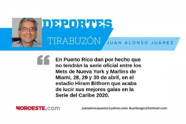OBSERVACIONES: En Puerto Rico dan por hecho que no tendrán la serie oficial entre los Mets de Nueva York y Marlins de Miami, 28, 29 y 30 de abril, en el estadio Hiram Bithorn que acaba de lucir sus mejores galas en la Serie del Caribe 2020.
