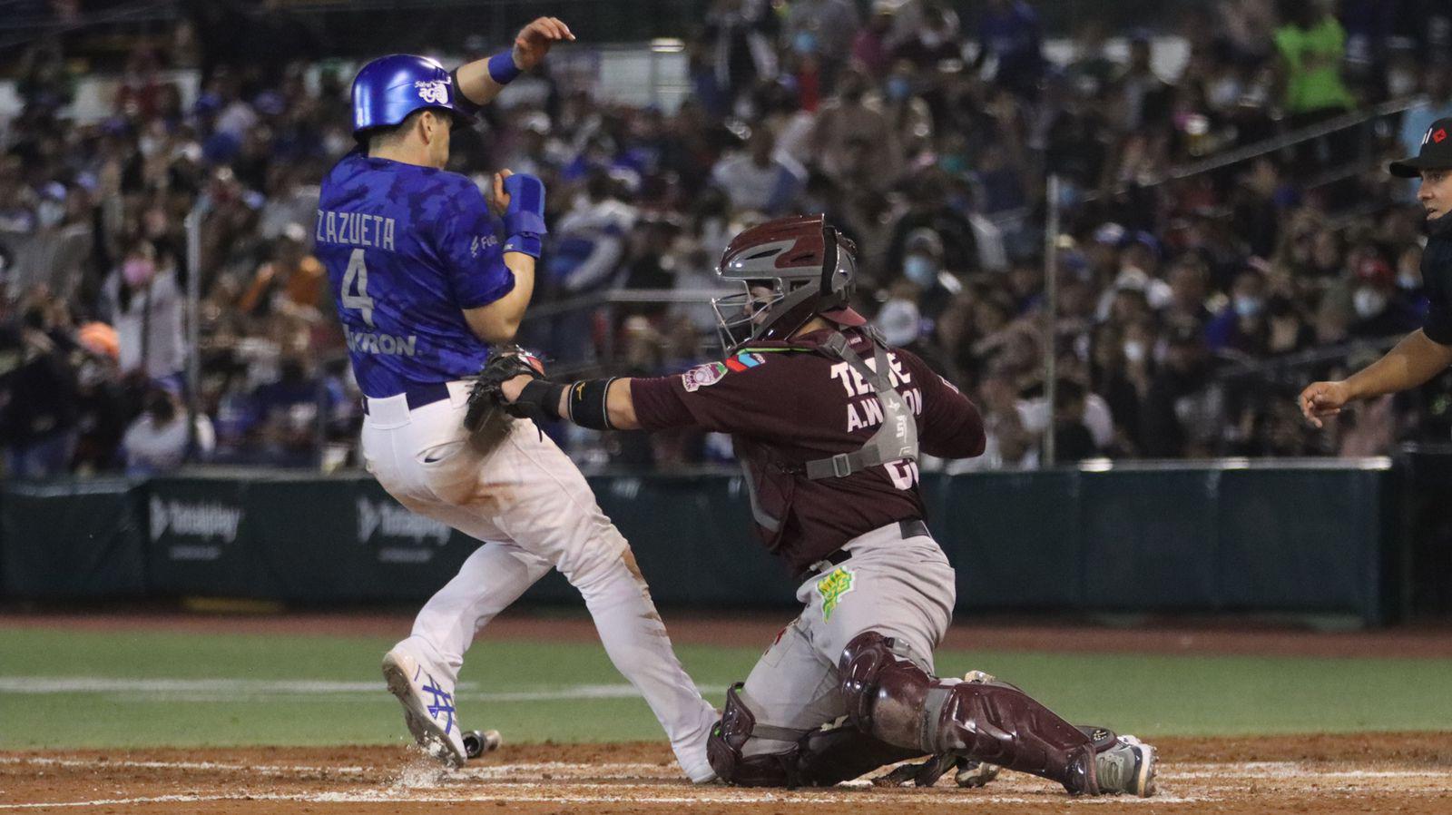 Jared Serna sacó un elevado de sacrificio a los dominios de Jesús Fabela, quien desde el central realizó un tiro para intentar sacar en home plate a Amadeo Zazueta, pero la carrera subió al marcador.