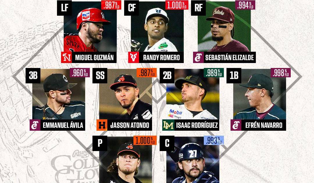 El Rawlings Gold Glove Award lo completa el jardinero derecho de los Tomateros de Culiacán, Sebastián Elizalde, con .994, solo 1 error en 161 lances a la defensiva.