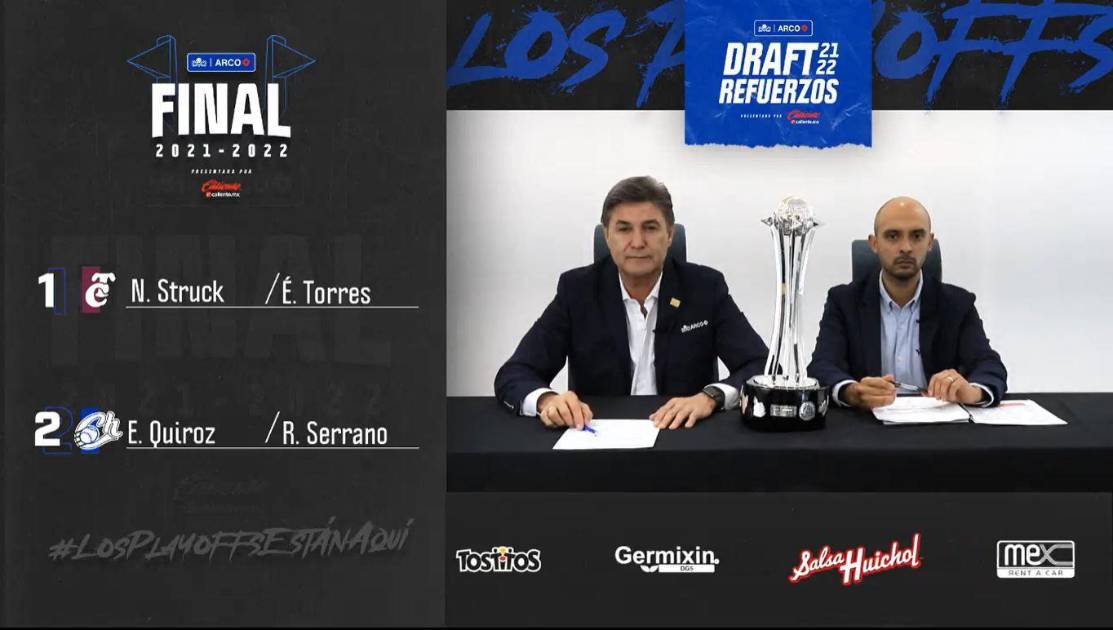 Con la presencia del presidente de la Liga ARCO Mexicana del Pacífico, Omar Canizales Soto, y del director deportivo del circuito, Christian Veliz, los presidentes de las dos organizaciones estuvieron conectados de manera virtual, para la elección de la pieza proveniente de los equipos eliminados que redondeará sus rósters.