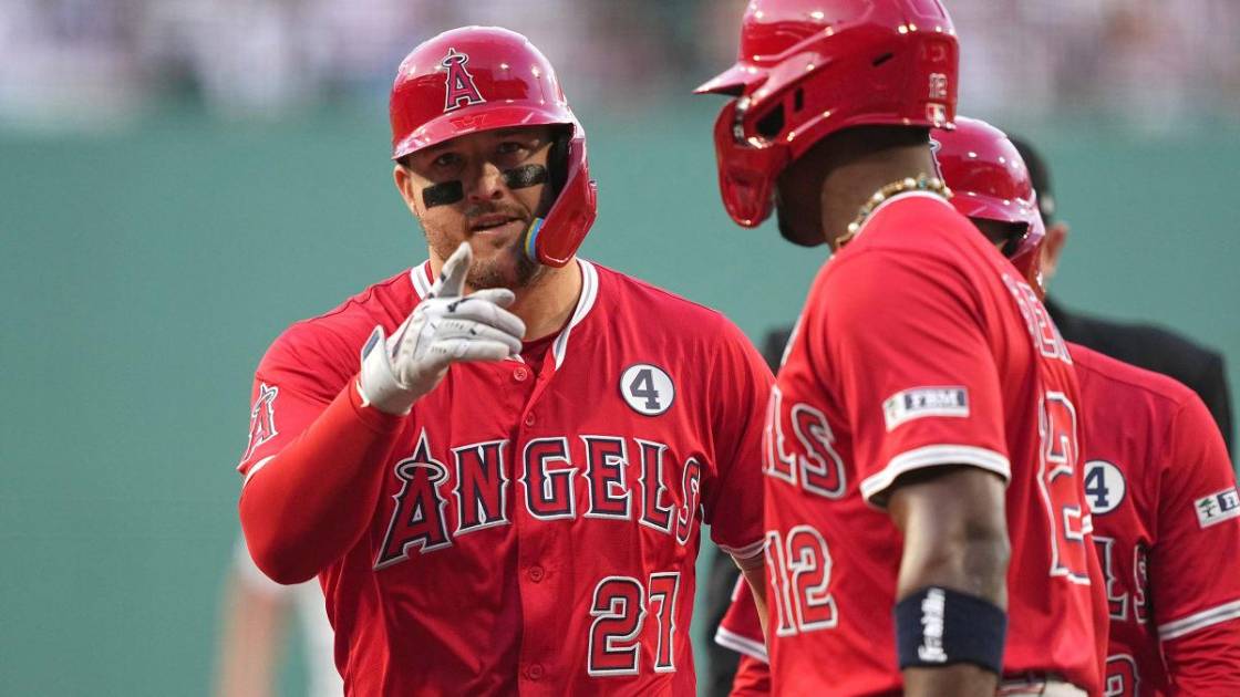 BOSTON._ Mike Trout conectó tres imparables, incluido un jonrón de tres carreras y 454 pies que pegó en la torre de luces entre el jardín izquierdo y central durante una primera entrada de seis carreras de los Angelinos la noche del lunes, y Los Ángeles resistió para vencer 7-6 a los Medias Rojas de Boston.