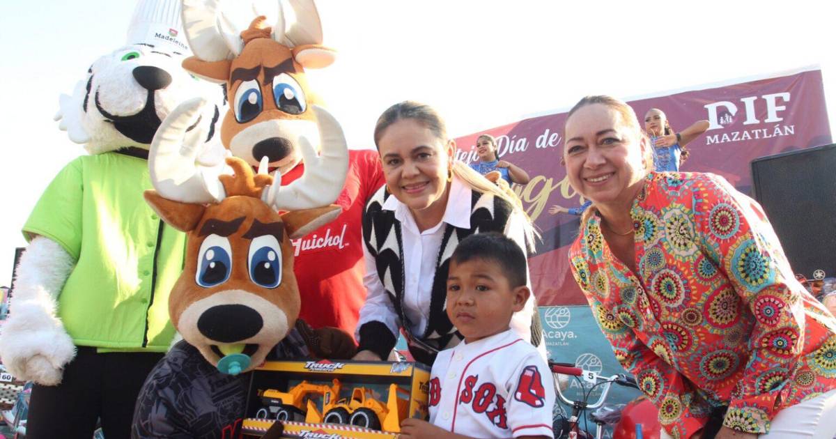 La presidenta del Sistema DIF Mazatlán, María Teresa Apodaca Muñoz; Armida Hernández, directora del DIF Mazatlán, y Ninfa Padrón, gerente de Mercadotecnia de Plaza Acaya, fueron las anfitrionas del evento, que durante dos horas entregó “Juguetes por Sonrisas”.
