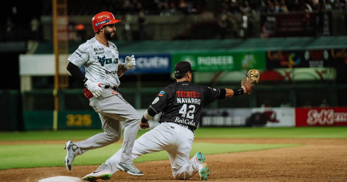 Ante los lanzamientos de Jonatan Bernal, Efrén Navarro conectó un batazo que pegó en la barda del jardín izquierdo, el cual mandó a la registradora a Ramiro Peña.
