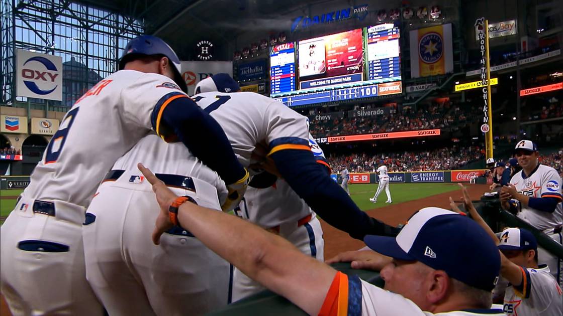 Álvarez había recibido una base por bolas para colocar corredores en primera y segunda. Cuando un rodado del boricua Carlos Correa fue mal tirado a la inicial por el lanzador de Texas, Jack Leiter, Álvarez anotó de pie desde la intermedia, siguiendo al quisqueyano Jeremy Peña al plato para darle ventaja de 2-0 a los Astros.