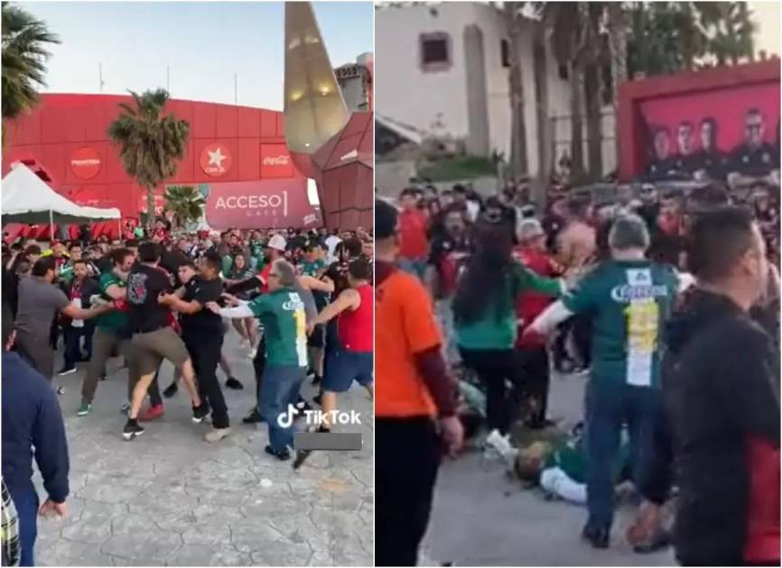 De acuerdo con videos que circulan en redes sociales, un grupo de personas con la playera de los Xolos golpeó a seguidores del León previo al inicio del partido.