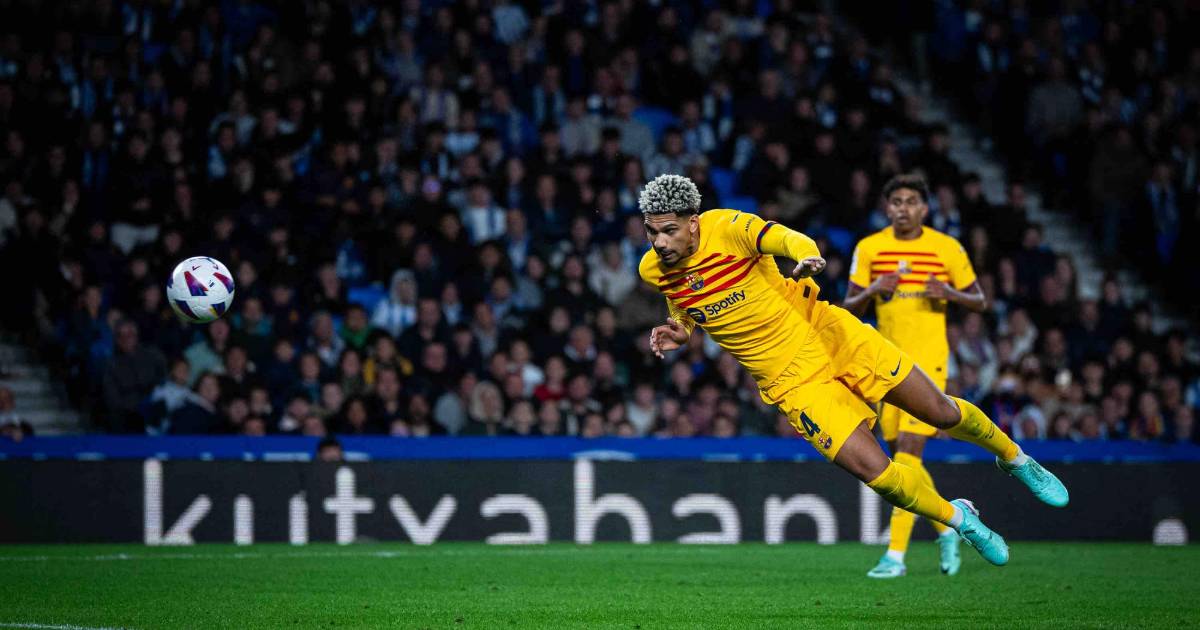 SAN SEBASTIÁN._ El Barcelona sumó su octava victoria de la temporada después de vencer a la Real Sociedad (0-1) en el tiempo añadido con un gol de cabeza de Ronald Araujo, en la fecha 12 de LaLiga.