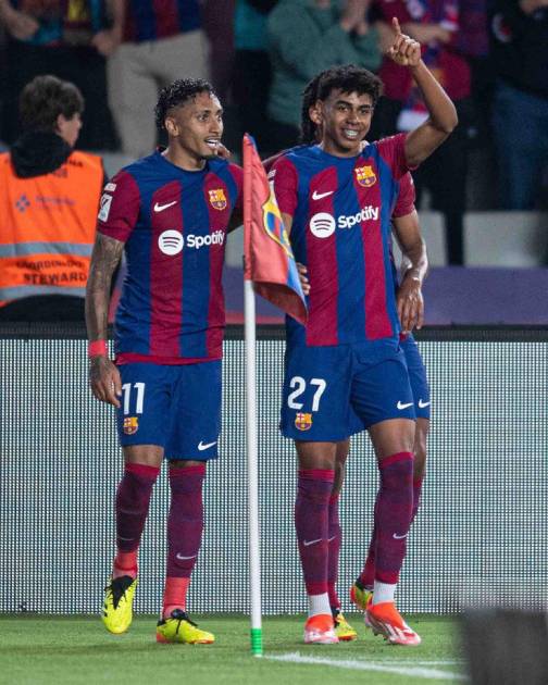 Ante algo menos de 36 mil espectadores en el estadio Olímpico Lluis Companys, el extremo español Lamine Yamal, de 16 años, abrió el marcador en el minuto 40 al término de un buen movimiento colectivo con Robert Lewandowski e Ilkay Gündogan, antes de que el brasileño Raphinha doblase la ventaja tras penal señalado por el VAR en el tiempo añadido (90+3).