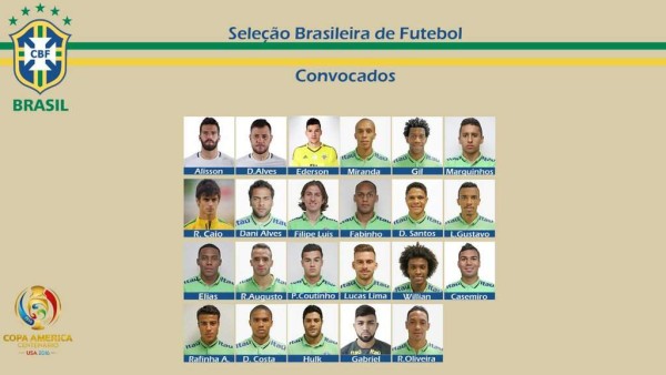 Gabriel Paulista (Arsenal), Fernandinho (Manchester City), Firmino (Liverpool) y Kaká (Orlando City) también estaban en la lista preliminar y no fueron convocados.