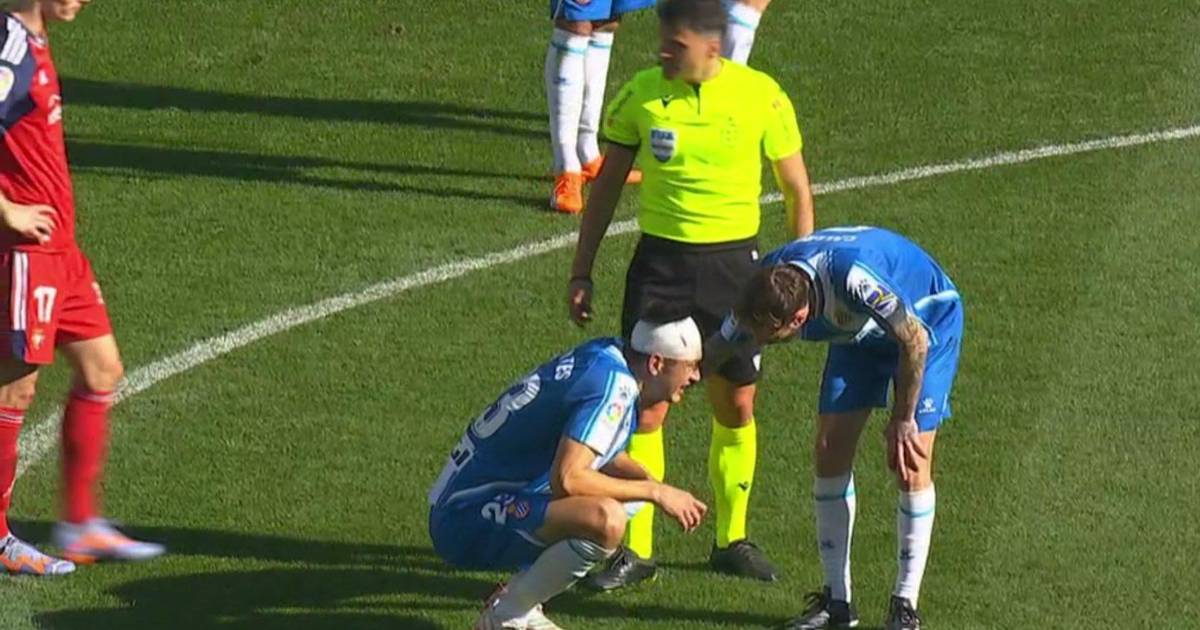 Montes sufrió un choque de cabezas con Ante Budimir, delantero del Osasuna, por lo que, incluso, se requirió la entrada de las asistencias médicas, quienes le pusieron un vendaje en primera instancia para ayudarlo.