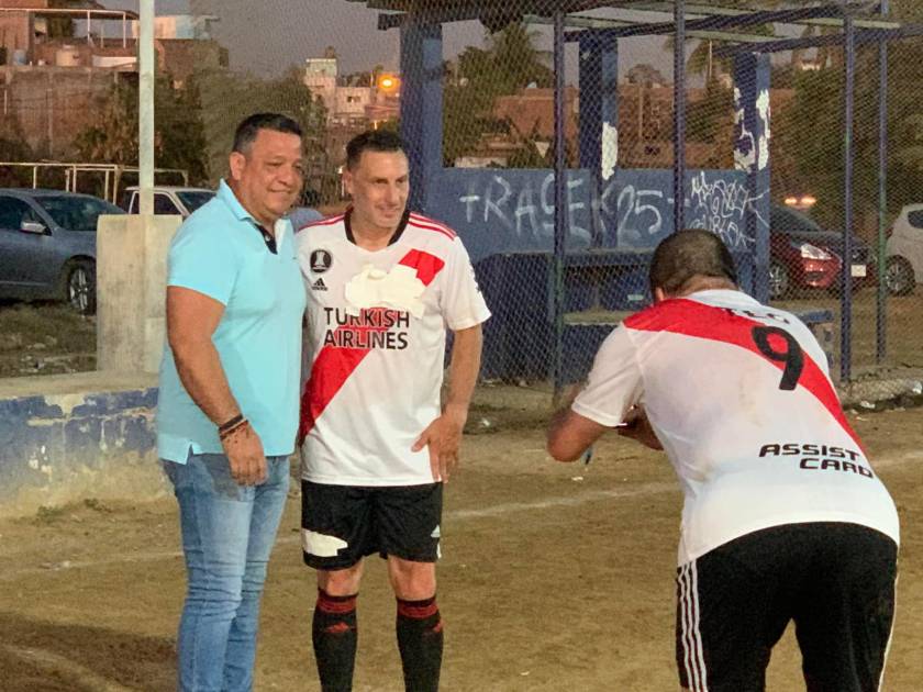 En redes sociales se pueden ver imágenes del jugador argentino que fue estrella en el futbol mexicano con Cruz Azul y Pachuca, donde se tomó fotos con jugadores y aficionados.