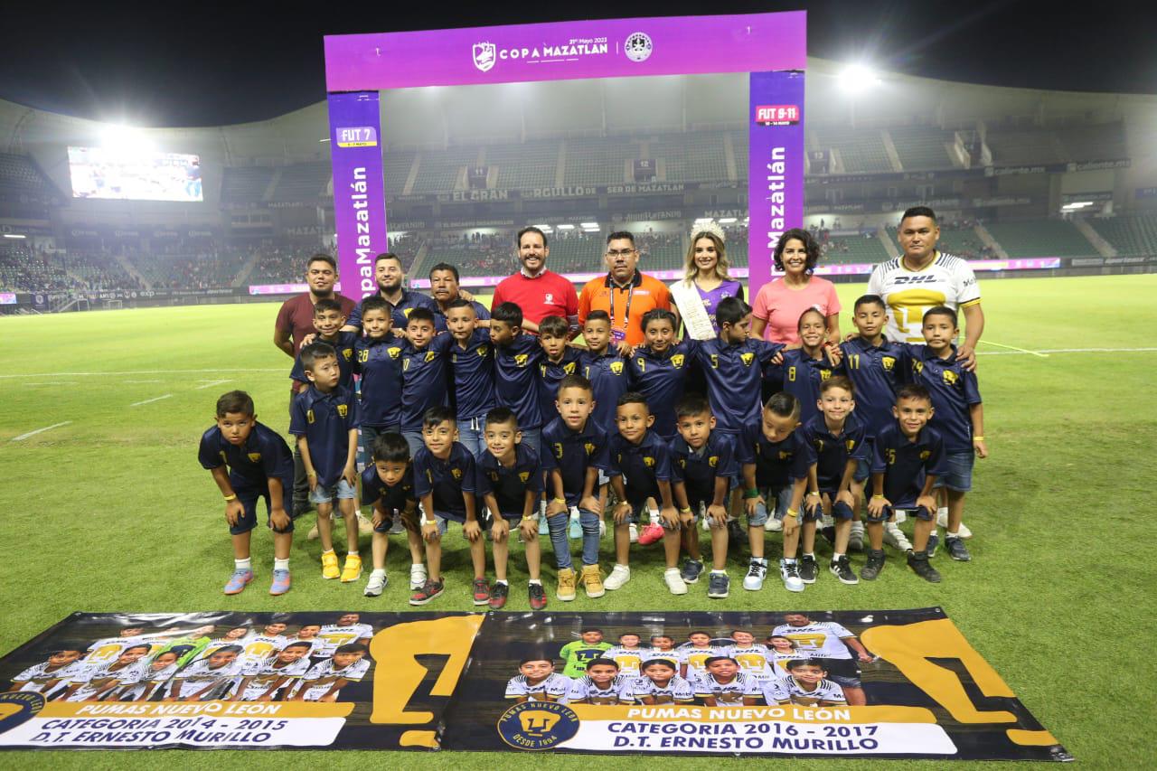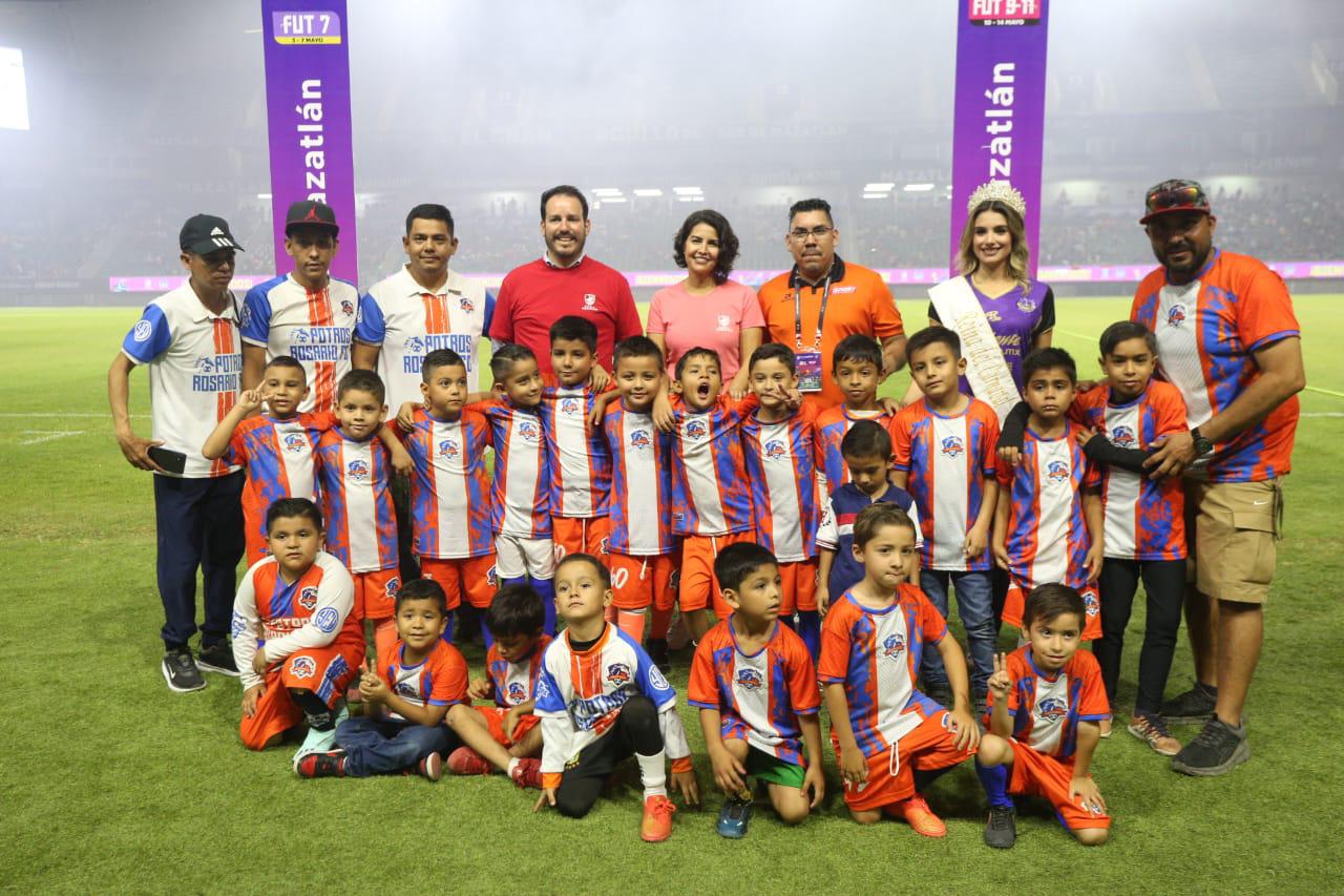 MAZATLÁN._ Jugadores, entrenadores y padres de familia vivieron la experiencia de la ceremonia de inauguración de la Copa Mazatlán de Futbol 7 en su edición 21, la cual se celebró con algarabía y emoción en el estadio Kraken, sede del Club Mazatlán FC.
