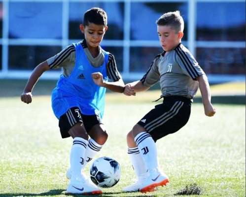 El equipo bianconero publicó una foto del hijo del astro portugués con el uniforme del cuadro italiano, mientras realiza un drible durante el entrenamiento con Matías Barzaglia (hijo de Andrea Barzaglia) .
