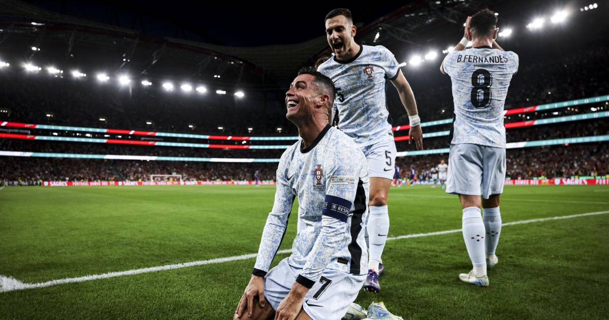 Ronaldo anotó el segundo gol para Portugal en el minuto 34 en el Estadio da Luz, tras recibir un centro de Nuno Mendes y rematar con una volea.