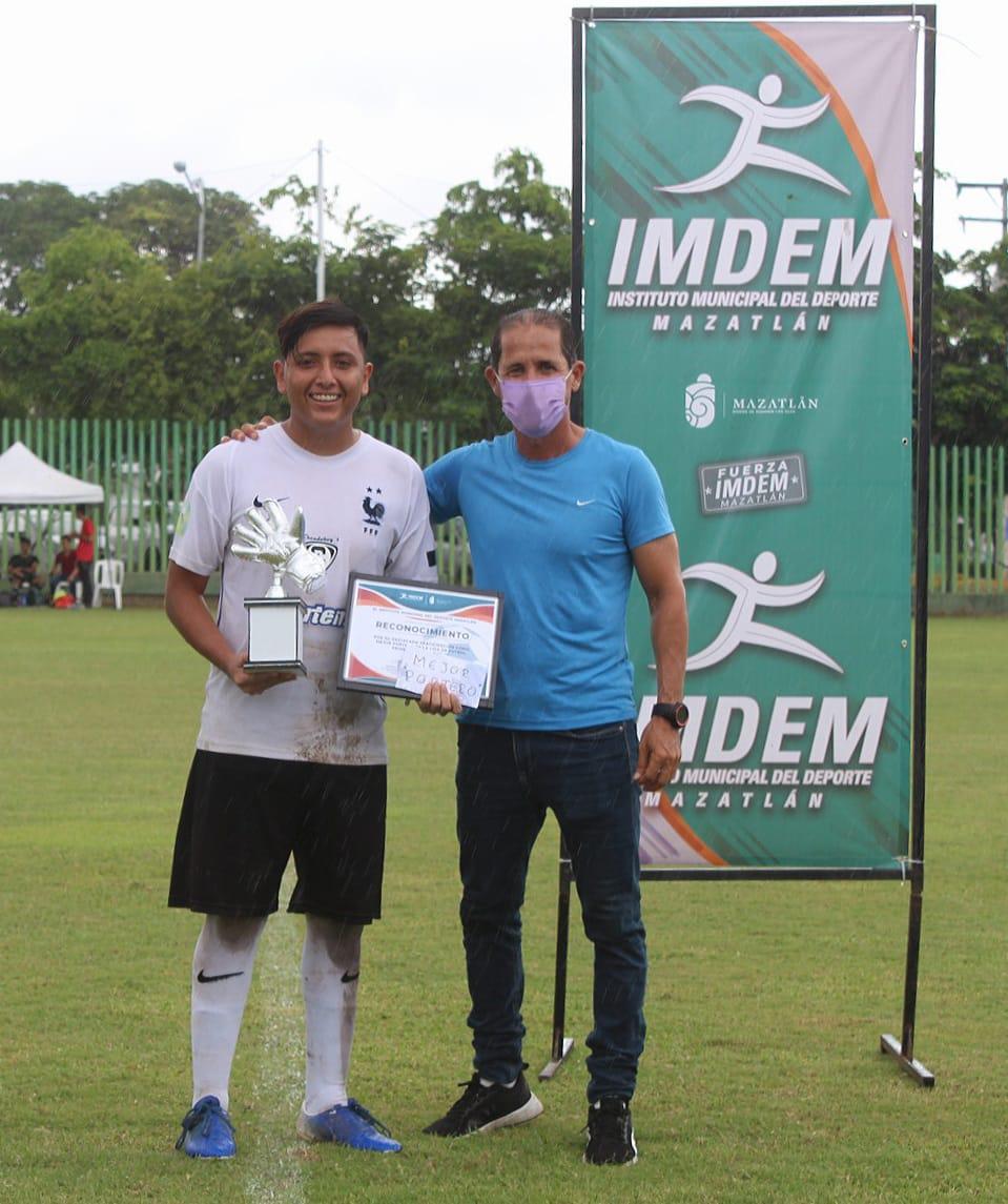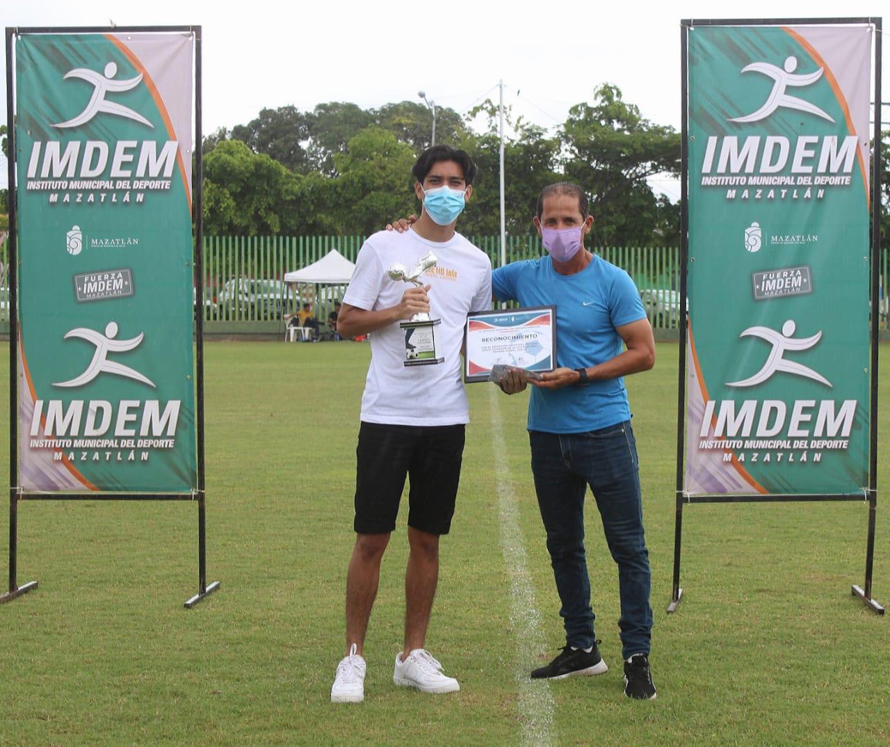 En representación del director del Instituto Municipal del Deporte, Jorge Palomino Rodríguez, Fabiola Verde Rosas, subdirectora del Imdem, junto a Francisco Luna, premió a los jugadores más destacados del torneo.