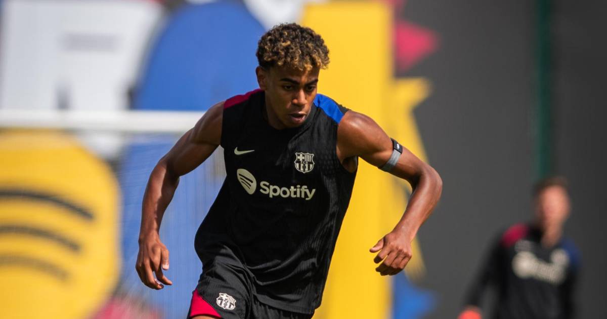 Lamine entrena con normalidad y visita a su padre