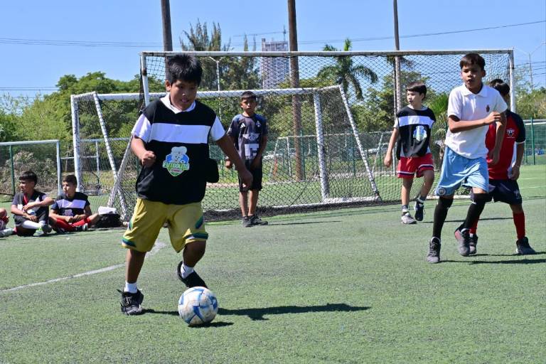 MAZATLÁN._ Una clase de futbol se vivió en el campo Cesáreo Álvarez González, de la Unidad Deportiva Toledo Corro, con las finales zonales de nivel primaria y la final femenil de secundarias a nivel local del Mundialito Escolar de Futbol 5.