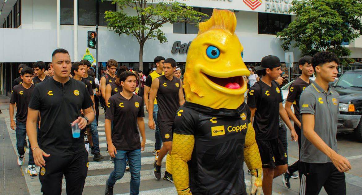 CULIACÁN._ Una nutrida delegación de Dorados de Sinaloa, entre jugadores de la Tercera División, algunos del primer equipo y Eldo, mascota oficial del club aurinegro, se dieron cita para apoyar el evento del Día Mundial del Peatón.