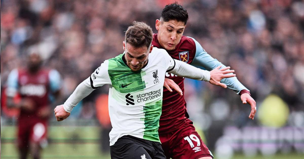 El Liverpool respondió bien al primer gol de Bowen en la primera mitad, adelantándose mediante una anotación en propia puerta de Alphonse Areola después del empate de Andy Robertson en el minuto 48, solo para que Antonio anotara el tanto de la igualada de cabeza a 13 minutos del final.