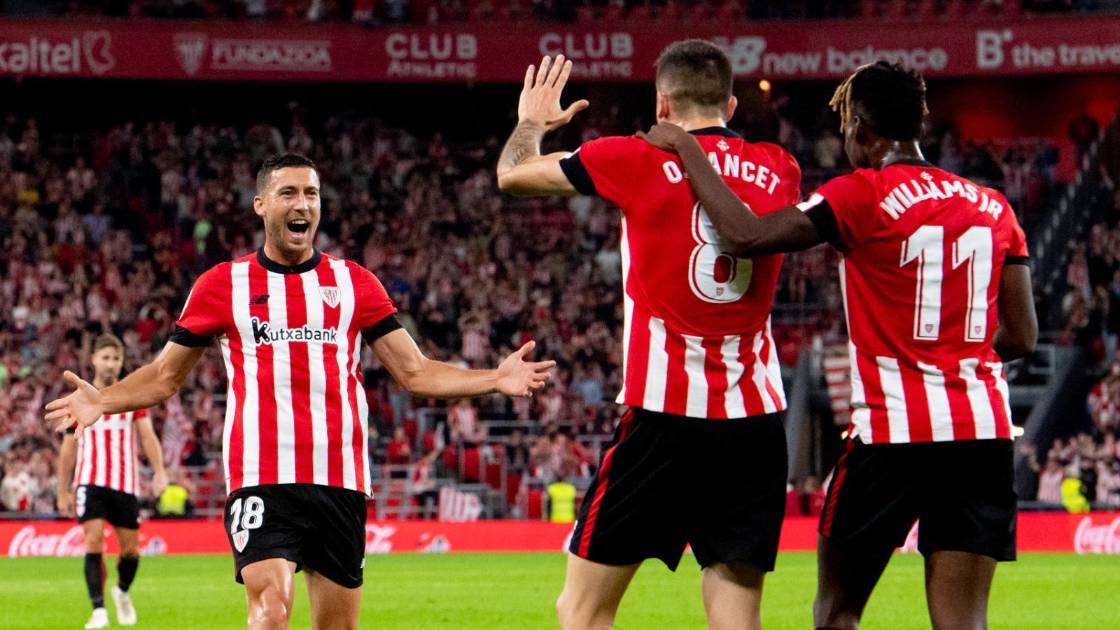 Completó la goleada Mikel Vesga desde el punto de penalti, una falta máxima de Arnau Puigmal al propio Vesga mucho más discutible que otro derribo en el área visitante en la primera mitad, todavía con 0-0, de Sergio Akieme a Nico Williams.
