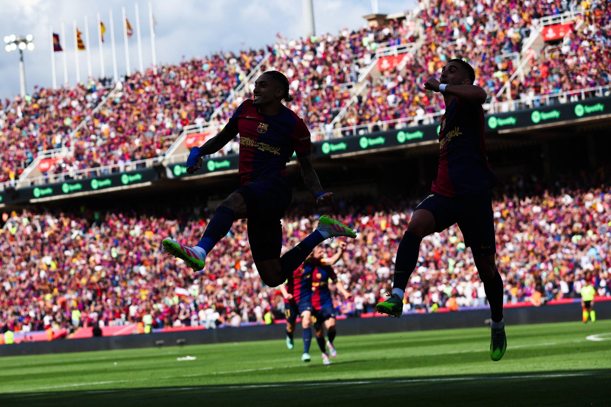 Un doblete del brasileño Raphinha (34 y 45) y los goles de Eric García (19) y Lamine Yamal (32) dieron la vuelta al marcador que permiten al equipo azulgrana tomar una ventaja de siete puntos sobre el club blanco a falta de solo tres jornadas para el final.