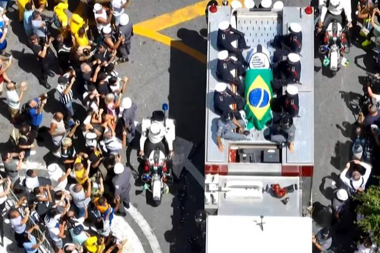 Al paso del camión de bomberos que transportó los restos mortales del exfutbolista brasileño, hubo una explosión de aplausos y vítores, con gritos de “Pelé, Pelé, Pelé” y “1.000 goles, 1.000 goles, 1.000 goles”. Banderolas gigantes ondeaban a ambos lados de la calle.